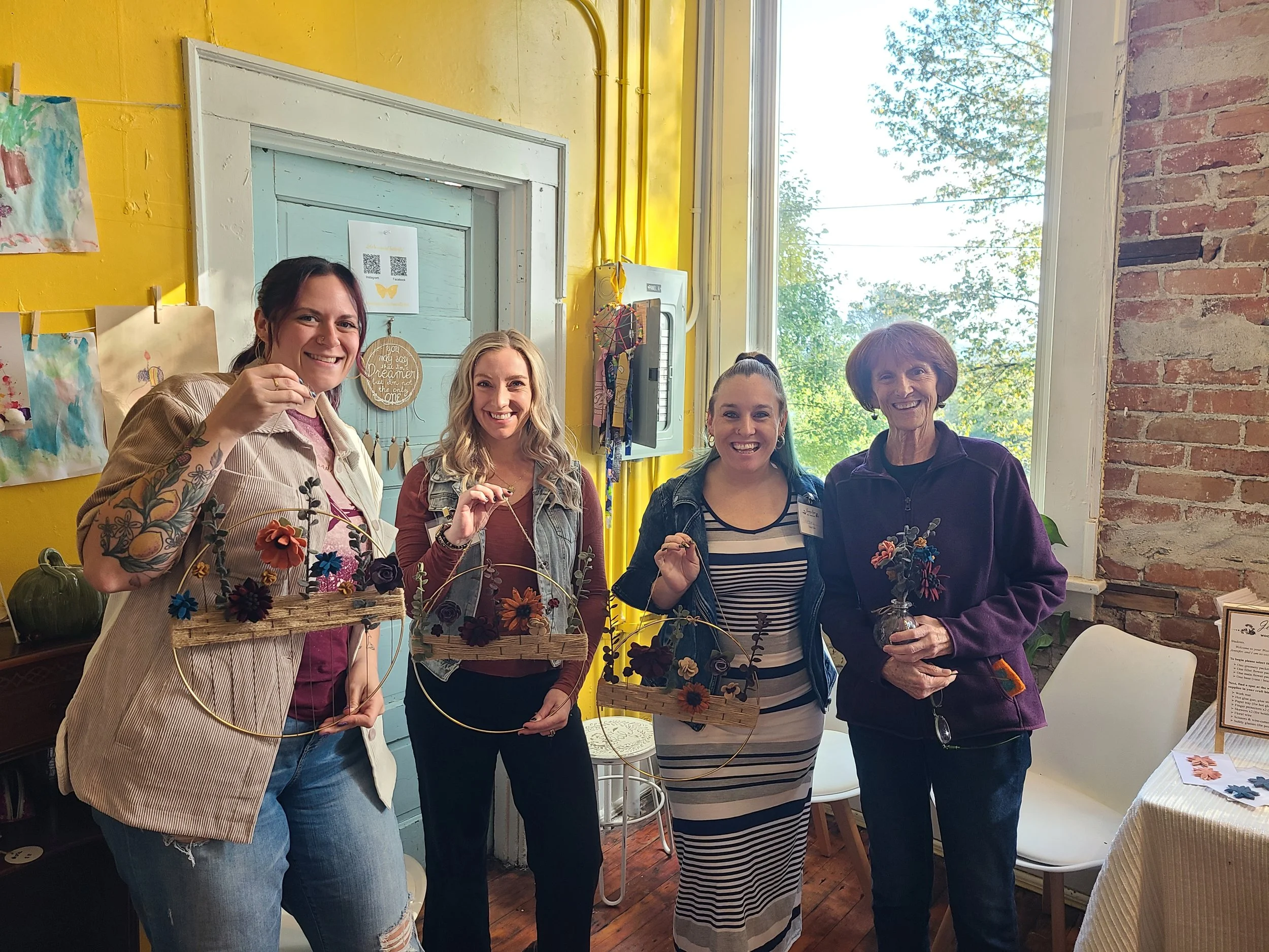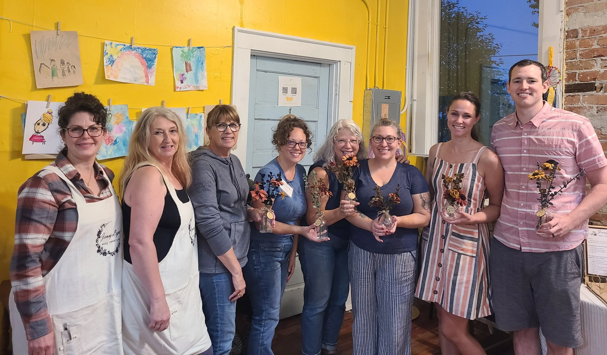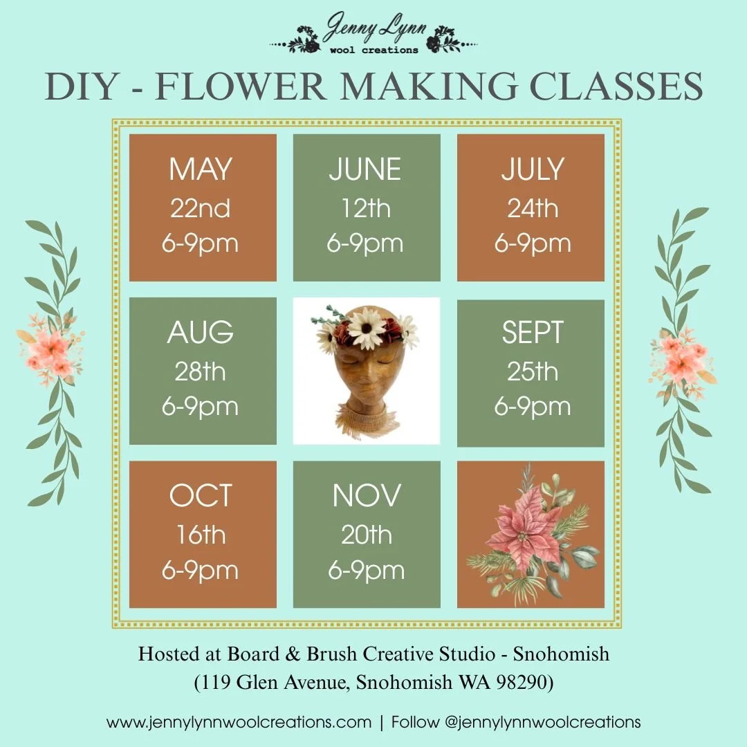 Discover the art of crafting wool flowers and greenery to assemble stunning floral arrangements, wreaths, or adornments using floral wire and a hot glue gun. Techniques will be showcased for attendees, with hands-on guidance provided through each phase. Participants will finish at least one kit by the class's conclusion and may opt to buy additional materials for further creations.