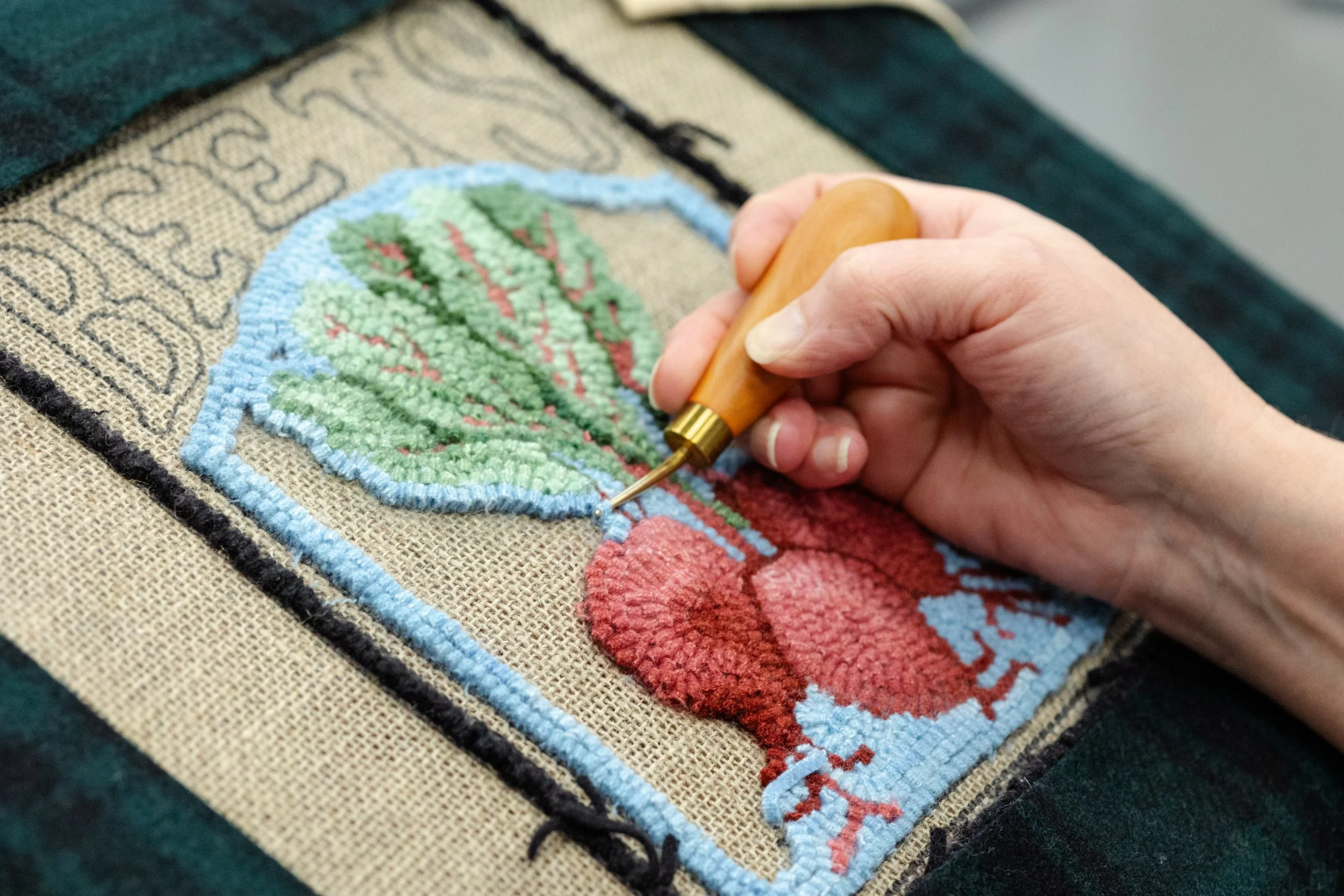 Traditional rug hooking is a wonderful fiber art that was born in the early 1800’s by working class families who couldn’t afford expensive imported rugs. These early rugs in their simplistic designs were both functional and beautiful. By the mid-1800’s recycled burlap feed sacks and worn-out clothing became the popular materials of choice. However, hand hooked rug making was not limited to just women. Sailors were also known to pull loops while out at sea. Canvas was used as their foundation material with loops of yarn and rope pulled through to recreate nautical scenes and images. Hooked rugs were both utilitarian and decorative. In the summer, they were laid on the floor loop-side down to endure daily wear and turned over when company came to call. As seasons changed and the nights grew cold, they doubled as bed coverings. The art of rug hooking continues to be passed down from one generation to the next, each unique piece telling a story and becoming a part of our history.
